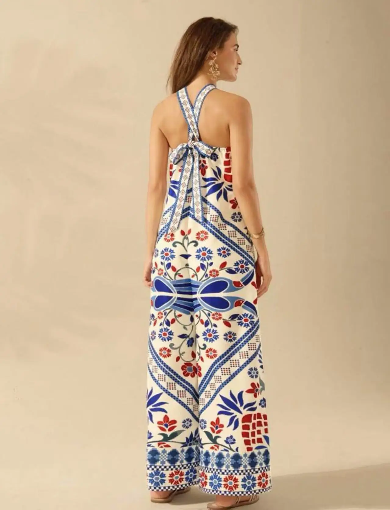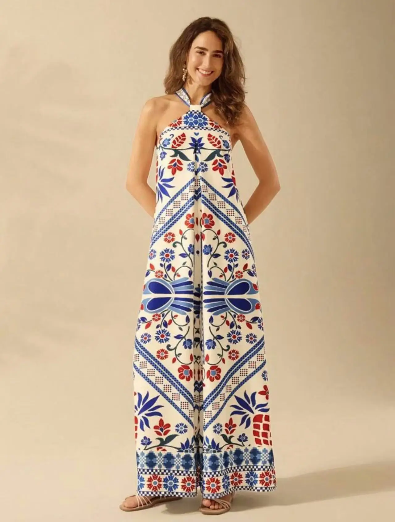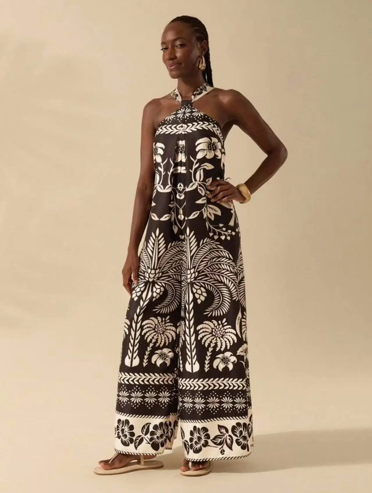 O design longo e fluido recebe uma estampa delicada, que adiciona personalidade sem exageros. A proposta casual ganha sofisticação no corte simples e atemporal, tornando o macacão perfeito para ocasiões que pedem leveza e presença.