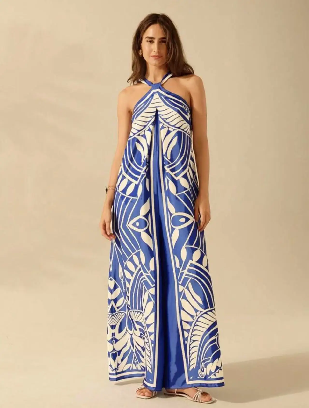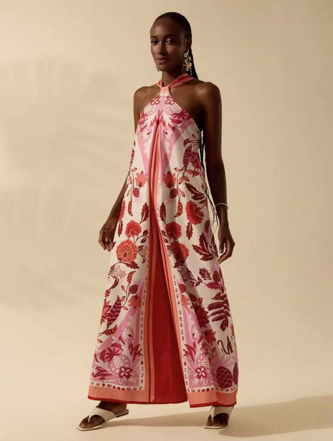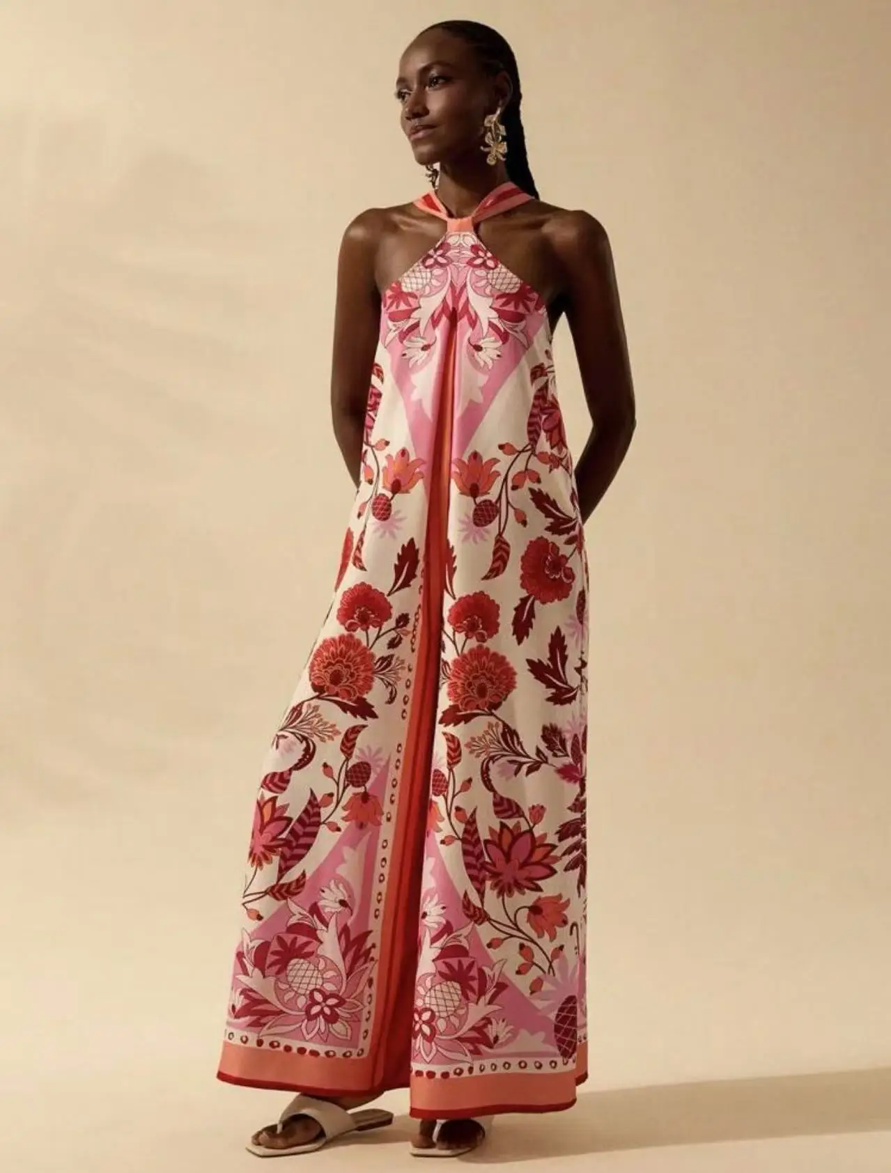 O design longo e fluido recebe uma estampa delicada, que adiciona personalidade sem exageros. A proposta casual ganha sofisticação no corte simples e atemporal, tornando o macacão perfeito para ocasiões que pedem leveza e presença.