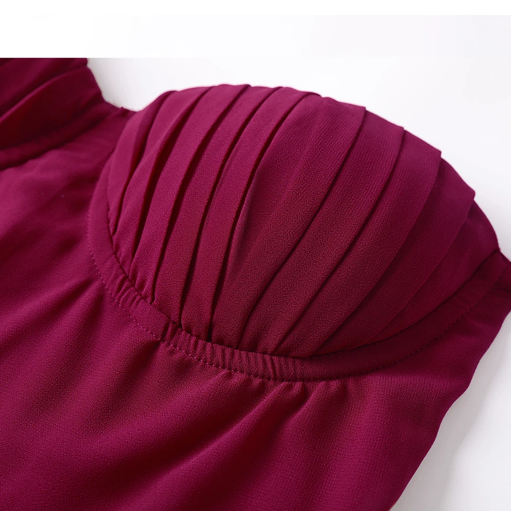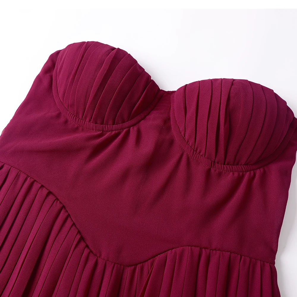 Moderno e marcante, este vestido traz a combinação perfeita entre elegância e sensualidade. O design tomara que caia com caimento fit and flare realça a silhueta de forma sofisticada, enquanto os pregueados adicionam textura e destaque ao visual. Ideal para mulheres que desejam um look impactante, estruturado e cheio de presença.